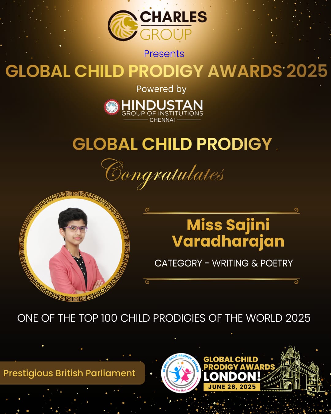 - The award ceremony took place on 19th April 2025 at GEMS Modern Academy, Dubai. Her consistent excellence in science continues to shine through this prestigious recognition.